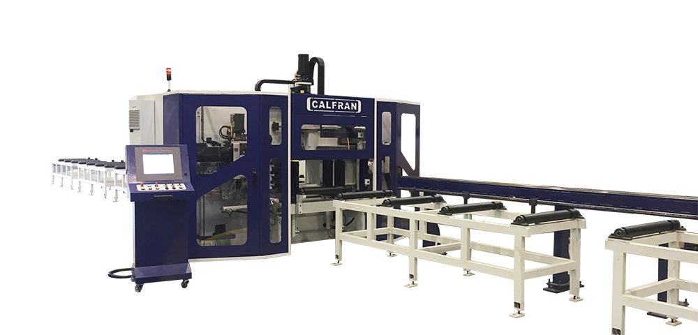 O centro de furação de vigas e perfis é considerado um sistema integrado que consiste em uma mesa de entrada, central de furação de vigas e perfis.
