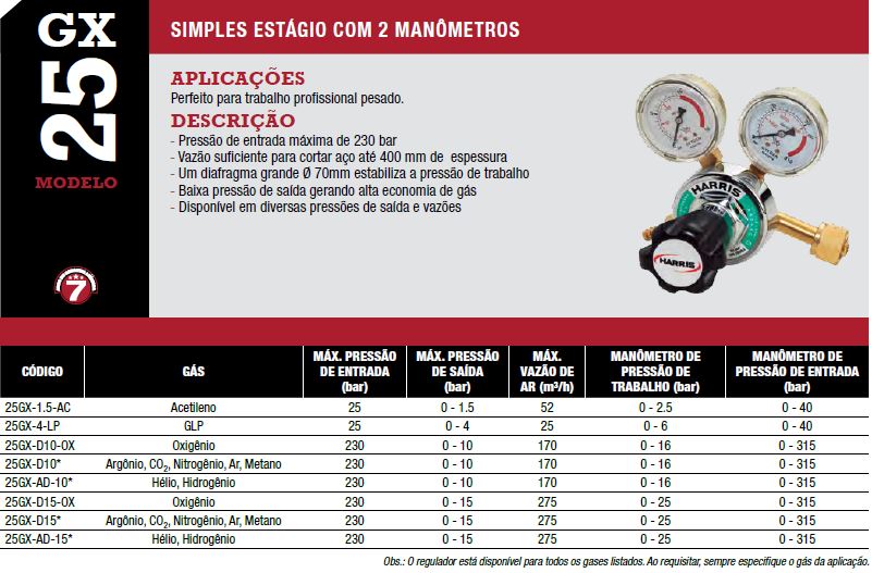 - Reguladores de Pressão para Cilindros: 25GX, 801, 818, 825DS (ideal para corte laser e plasma CNC)
